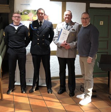 Eine außerprogrammatische Überraschung gab es am Ende der Veranstaltung: die Reservistenkameradschaft Wingst und Umgebung überreichten eine Spende in Höhe von 500 Euro an den Volksbund. Das Geld stammt aus dem Erlös eines Benefizkonzertes.